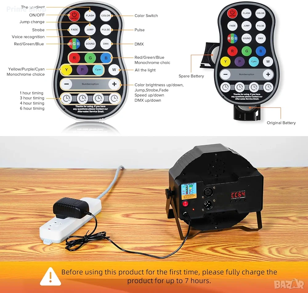 Тагове: акумулаторен LED прожектор, сценично осветление, парти осветление, LED Par светлини, DMX прожектор, дискотечна светлина, RGB прожектор, осветление за събития, безжичен прожектор