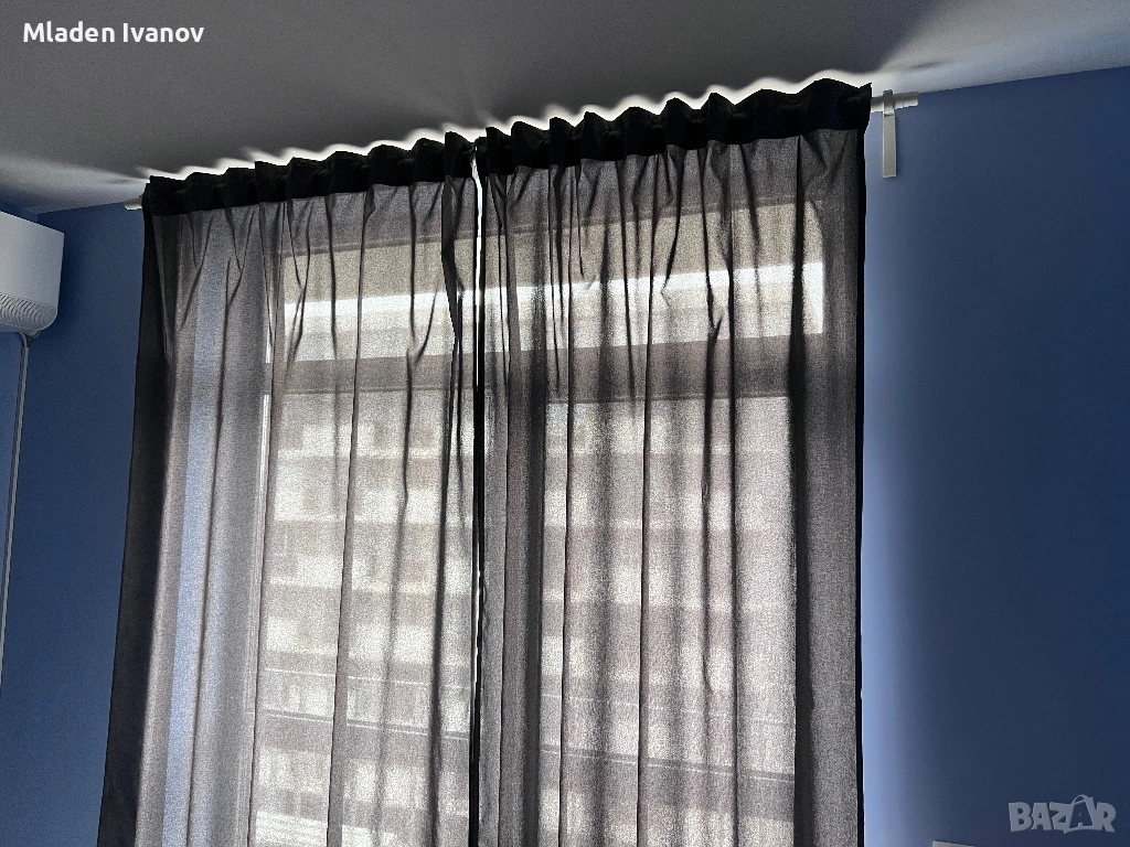 Комплект от 2 броя висококачествени завеси от ИКЕА в сив цвят всяко с размери 145х250см, общо около 290. Аз съм ги ползвал на прозорец 175 см и седят много добре. Завесите са без следи от употреба, сравнително плътни и качествени, пропускат светлина, подходящи за декорация на всяка стая.