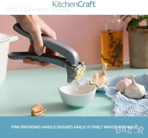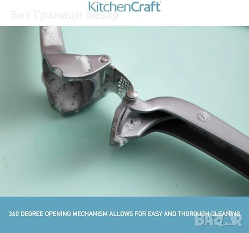 Преса за чесън с 360° отваряне за бързо и удобно пресоване
