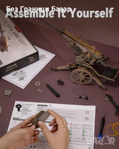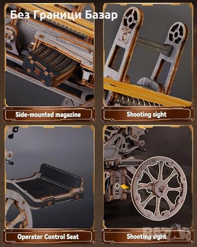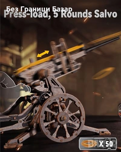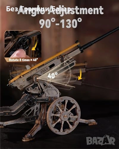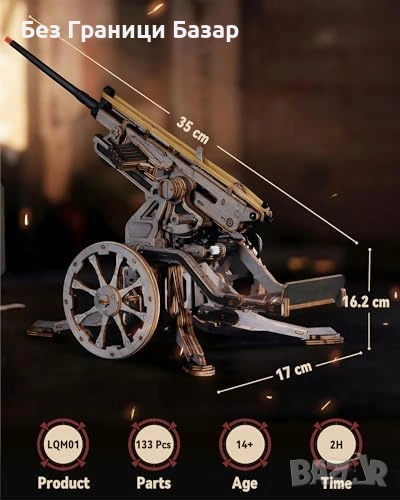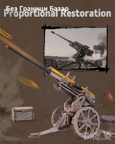 3D дървен пъзел с механична артилерийска платформа в мащаб 1:8