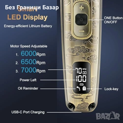 Регулируема скорост до 7000 RPM за гладко и точно подстригване