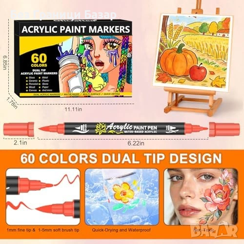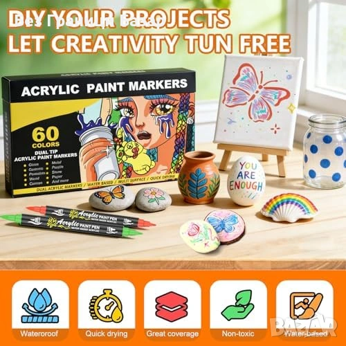 Комплект от 60 акрилни маркера в богата гама цветове