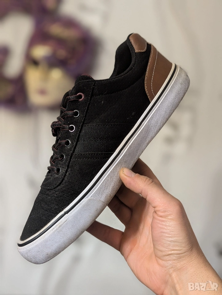 Материали: Горната част е изработена от синтетична кожа (веган материали) с перфорирани детайли за по-добра вентилация.