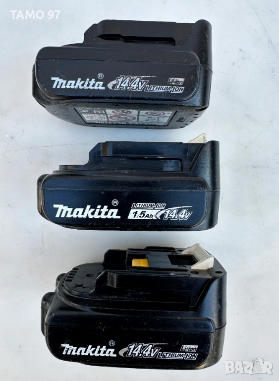 Макита за машини и инструменти работещи на 14.4V напрежение, внос от Франция. Батериите са работещи и държат заряд! Имам налични 3 броя и обявената цена е за брой 23евро може единствено, коментар на цената при купуване на 3-те заедно за 60евро.