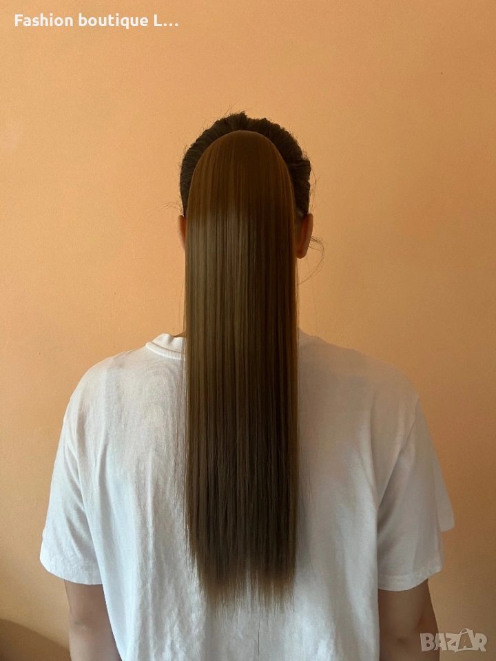 Светло кестенява коса на екстеншън тип конска опашка 60 сантиметра 100 грама може да се къдри ❤️❤️❤️