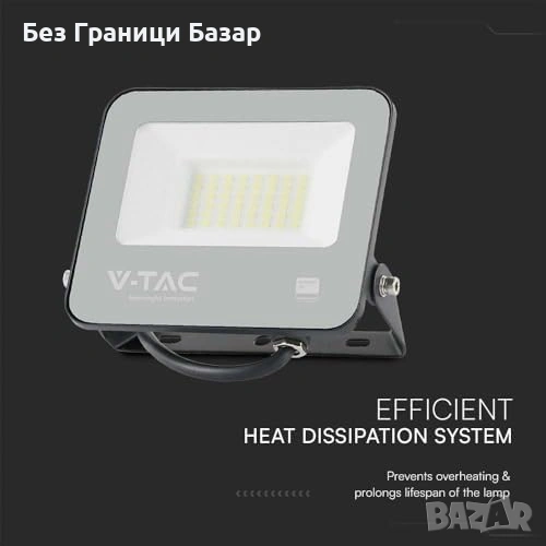Нов Външен LED прожектор 30W 4000K IP65 135lm/W черен за склад гараж мазе