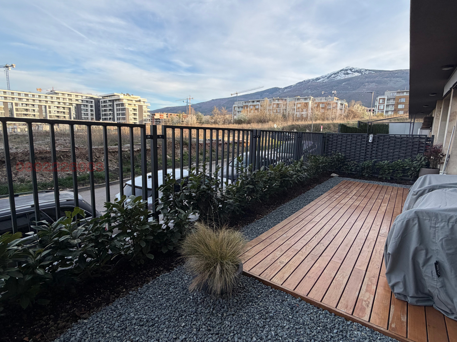 Продавам собствен тристаен партерен апартамент 90 кв + дворна тераса 30 кв., оборудвана с тенти с дистанционно управление, чувствителност за вятър, естествен декинг и озеленяване за създаване на уединение. Терасата и апартамента са с висок клас секюрити защита. Изложение югоизток на всички стаи. Подово отопление на целия апартамент с отделни термостати, охлаждане с климатици, настилки гранитогрес за най добра енерго ефективност. Три слънчеви стаи с големи прозорци, баня и тоалетна, отделна тоалетна, гардеробна. За повече информация и снимки, може да се свържете с мен. Цената за хора със сериозен интерес, може да бъде коментирана в интерес и на двете страни.