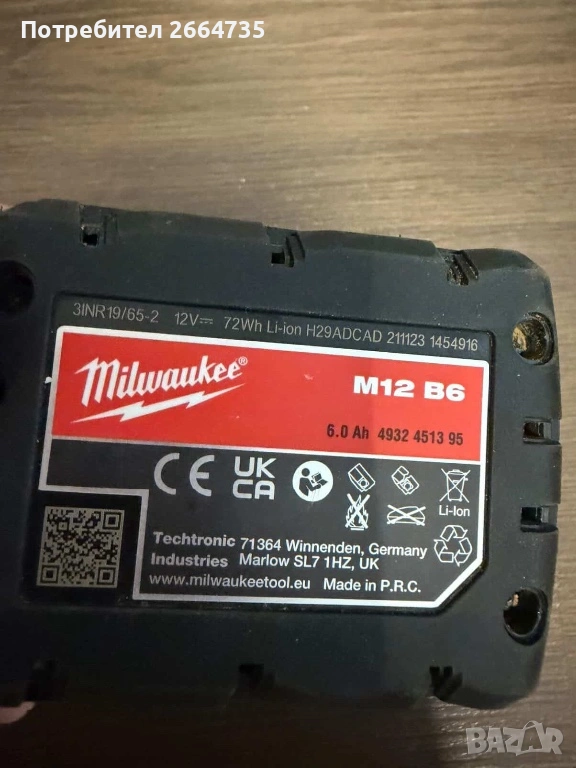 Батерия Milwaukee M12 B6 → Обява 54151966