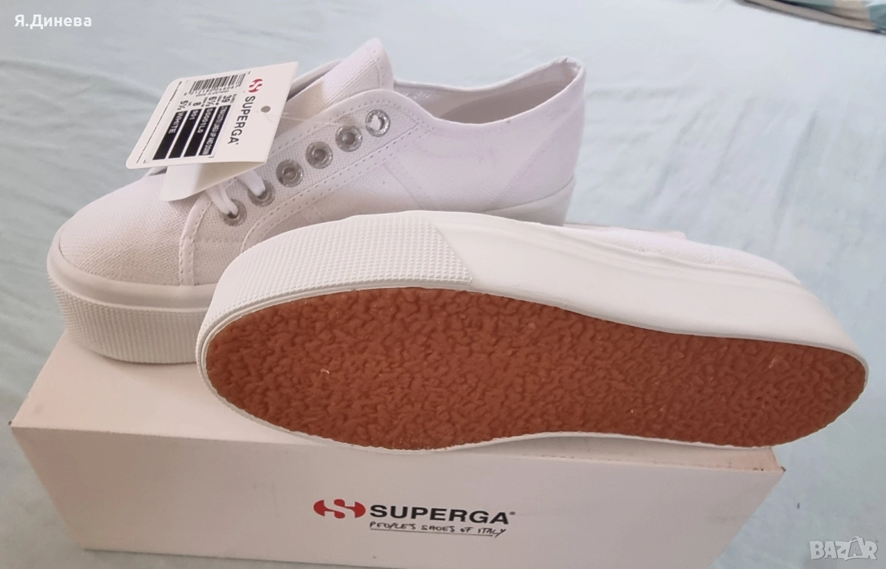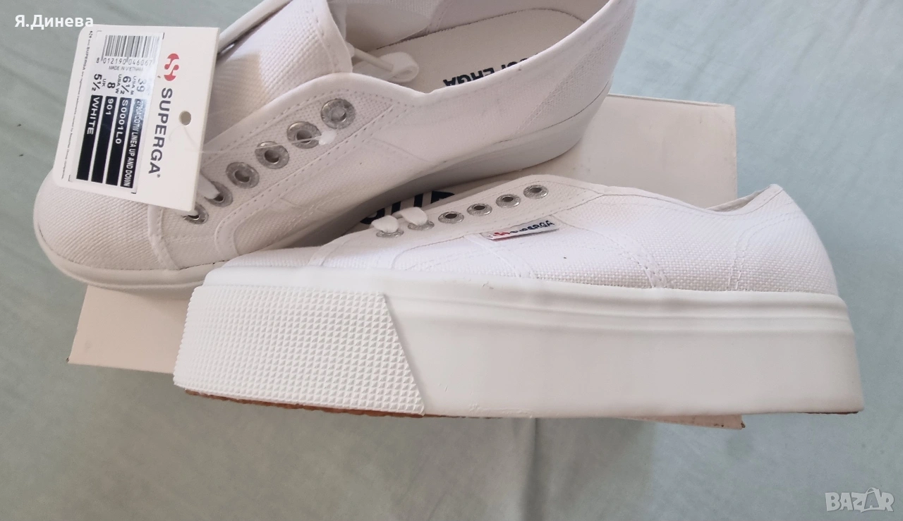 Дамски кецове с висока подметка в бял цвят. С удобна подметка и мека стелка,имаме няколко чифта всички са 39н. Цената е за брой внос от Германия.