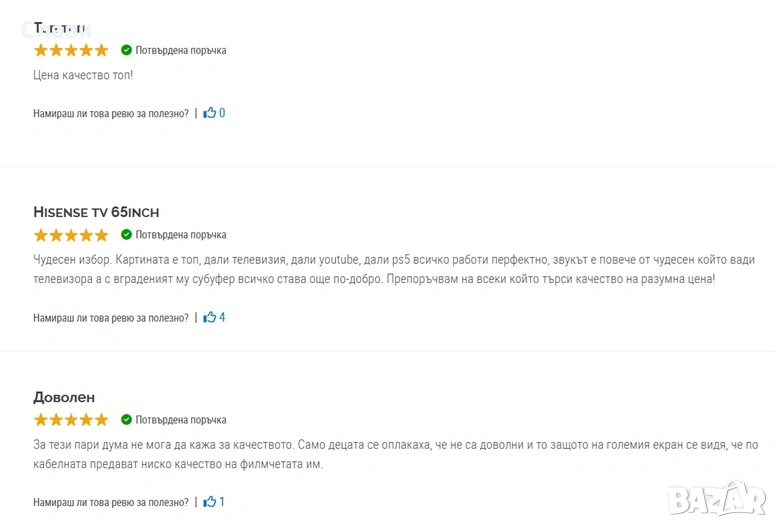 Телевизора е ползван/включван 10-15 пъти, като след има няма и месец е прибран обратно в кашона си. Просто се оказа, че е прекалено голям - 75"(огромен е!) за хола и беше заменен с доста по-малък телевизор 55". Картината на телевизора е наистина невероятна, но все пак заема повече от половин стена. Оригиналните лепенки още са по него!