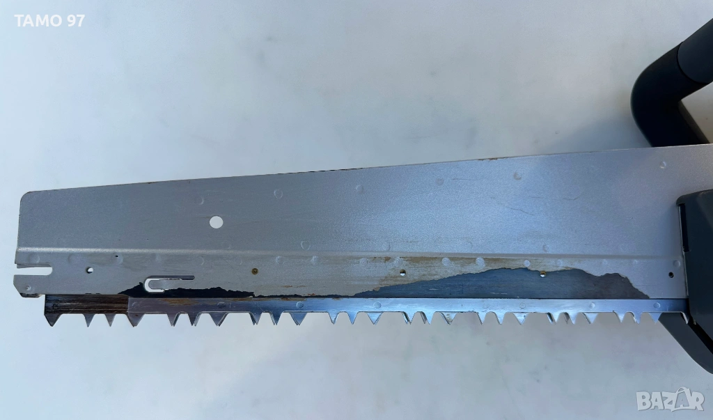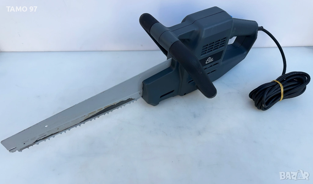 Продавам електрически трион за разане на дърво и тухли тип (Алигатор) на Елу като нов използван е броени пъти, както се вижда на снимките и работи перфектно, английско производство внос от Франция. Триона в момента е с нож за дърво при смяна с нож за тухли може да се използва и за тухли. Пращаме с опция преглед и тест с куриерска фирма еконт може и лично предаване за гр. Шумен.