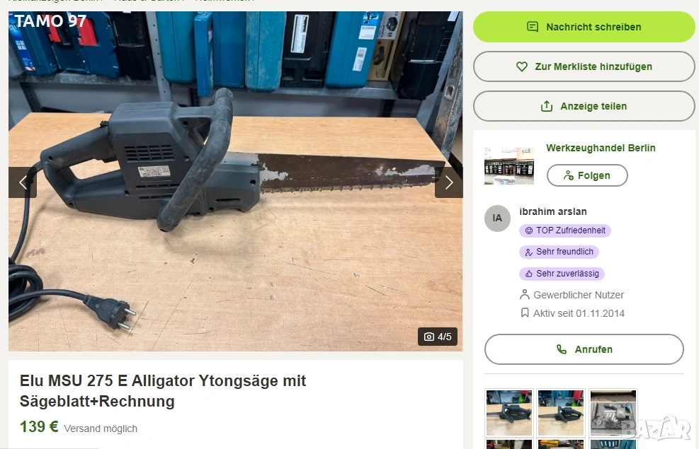 В eBay.de същата машина в лош вид се продава за: 139евро