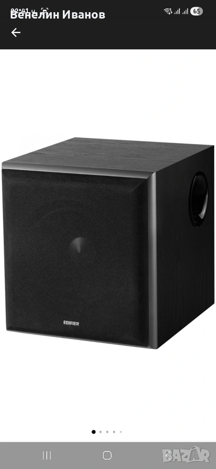 Продавам активен субуфер Edifier T5-BK в перфектно техническо и визуално състояние. Моделът е идеален за добавяне на дълбок и чист бас към настолни колони или системи за домашно кино.Основни характеристики: Мощност: 70W RMS за силен и контролиран звук. Говорител: 8-инчов преден бас говорител с голям ход. Честотен обхват: Слиза до 38Hz за истинско усещане на ниските честоти. Контрол: Възможност за настройка на силата (Volume), честотата на срязване (Low Pass Filter) и фазата. Свързаност: RCA Line-in/Line-out за лесно свързване към всякакви устройства. Корпус: Солиден MDF панел за минимален резонанс.Субуферът разполага и с Auto Standby функция, която пести енергия, когато не се използва. Изключително чист и плътен звук без изкривявания.Закупен е в края на 2025 от https://www.jarcomputers.com/ Перфектно Състояние.Позвънете ми ако имате въпроси.
