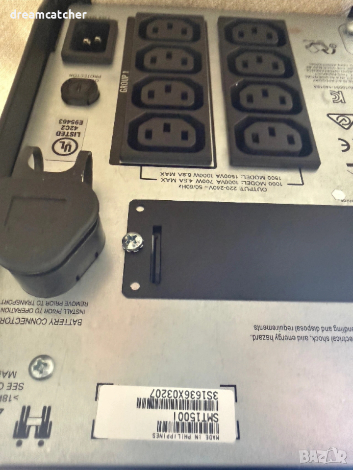 UPS-a e купуван преди 3 години но е ползван едва 3 месеца и е практически нов. Батериите са на 95% и държат по спеццифиация. Нови батерии са 80евро, така че са евтин консумтив и се сменят изключително лесно, затова и цената е почти наполовина от магазина.. Това е много качествн UPS с чиста синусуида и идва с всички диплянки, кабели и конзолни адаптери, както и единн кабел към шуко (за разклонител).