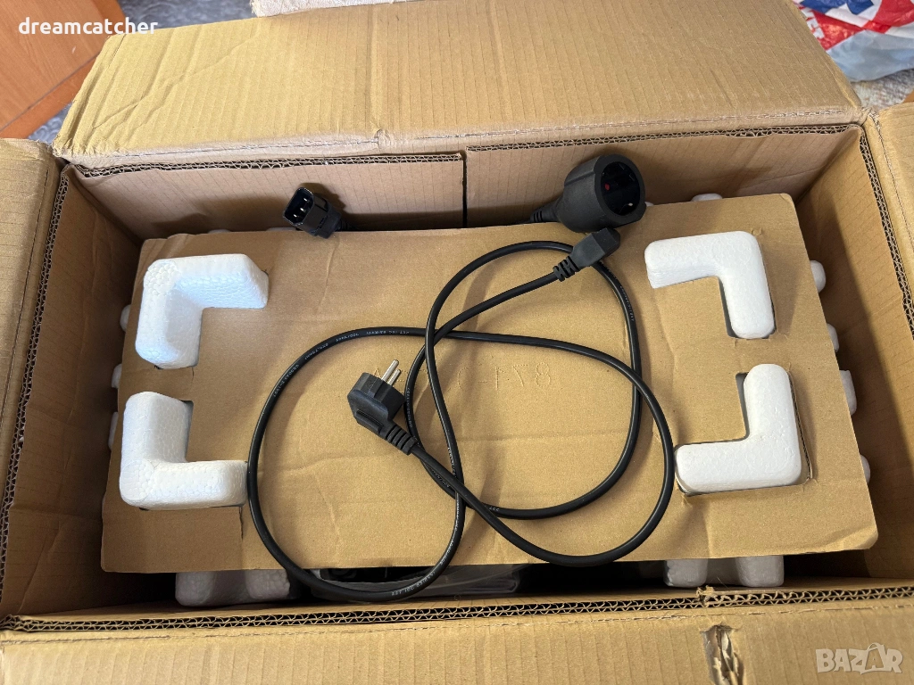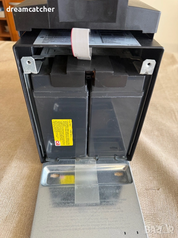 UPS-a e купуван преди 3 години но е ползван едва 3 месеца и е практически нов. Батериите са на 95% и държат по спеццифиация. Нови батерии са 80евро, така че са евтин консумтив и се сменят изключително лесно, затова и цената е почти наполовина от магазина.. Това е много качествн UPS с чиста синусуида и идва с всички диплянки, кабели и конзолни адаптери, както и единн кабел към шуко (за разклонител).