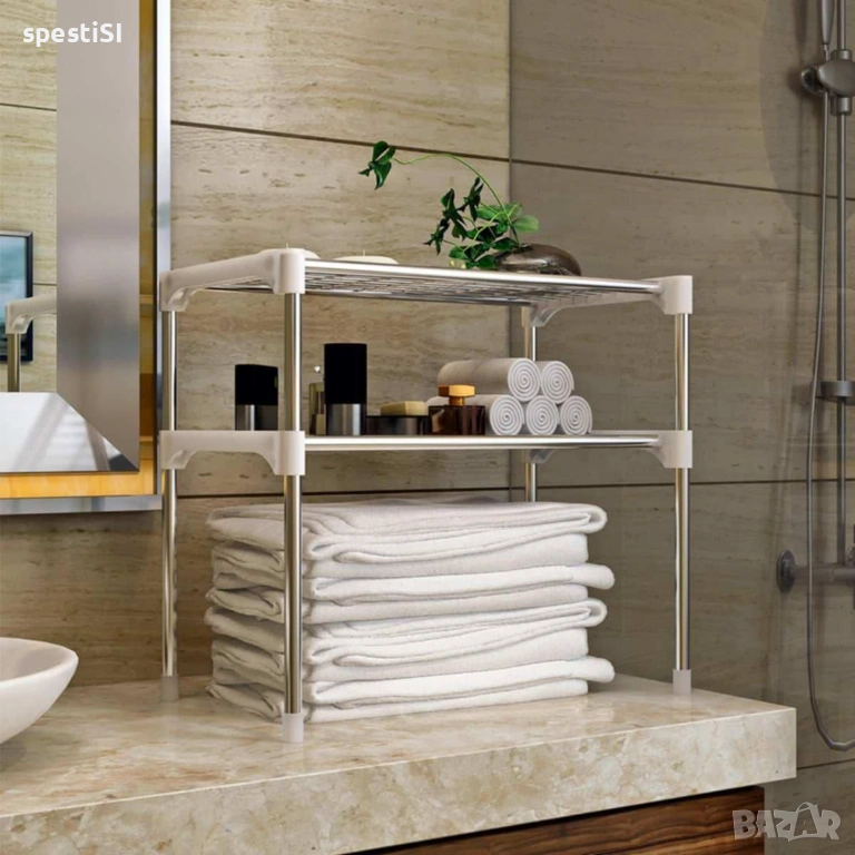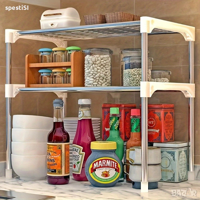 Тази поставка за микровълнова е изработена от здрави метални профили и свързващи PVC елементи, което я прави лека за местене, но достатъчно стабилна за ежедневна употреба. Сглобява се бързо и лесно, без да са необходими специални инструменти или пробиване на стени. Със своя изчистен дизайн в бяло и сребристо, този кухненски органайзер се вписва лесно във всеки интериор. Рафтът над микровълновата е отлично решение за малки кухни, където всеки сантиметър свободна площ е от значение.
