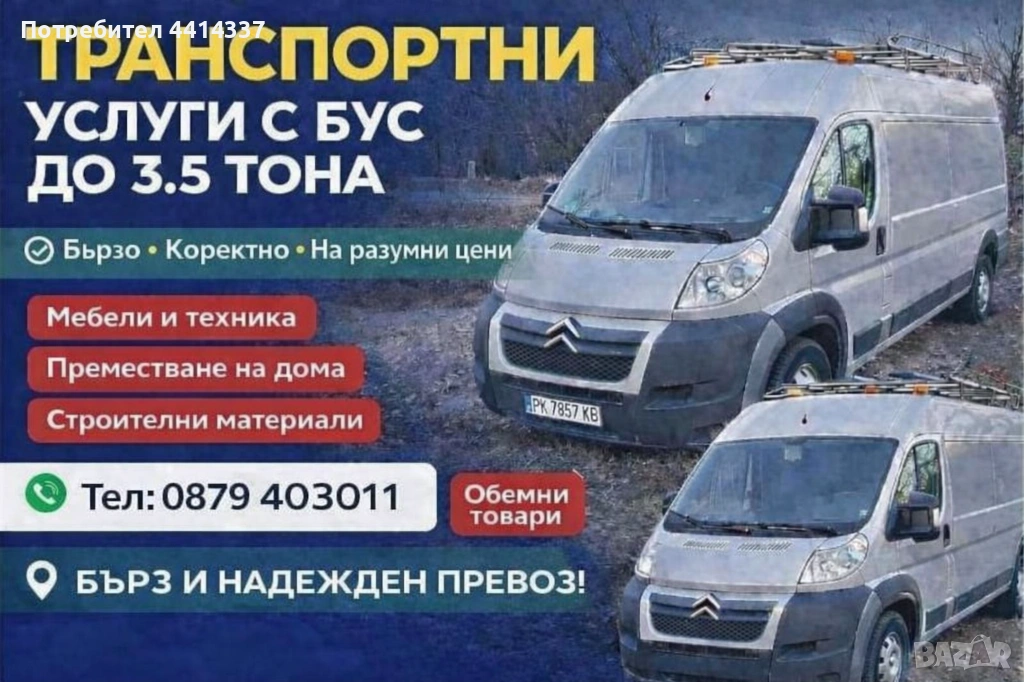 🚚 Транспортни услуги с бус – Перник и София