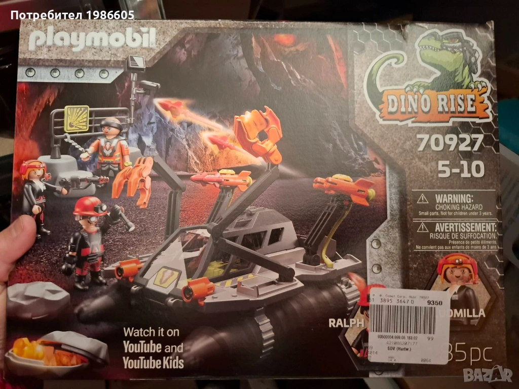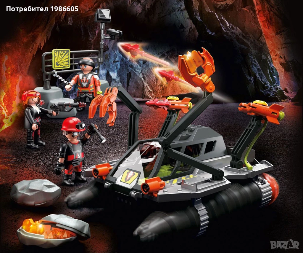 Със своята мощна сондажна машина злодеите Людмила и Ралф от Comet Corporation си проправят път през мината на Дино. Пробивните глави, които се въртят, когато се движат, както и две функционални оръдия и гъвкавите рамена за захващане предлагат разнообразно забавление в търсене на енергийни камъни и източник на лава. Включва 3 фигури, енергийни камъни и други аксесоари. В мината на Дино коварният екип на Comet Corporation трябва да се приспособи към нова ситуация. Използвайки своята бормашина за разрушаване, Людмила и Ралф си проправят път през тунелите на мината на Дино в търсене на източника на лава. Когато бормашината за разрушаване е в движение, задвижването на верижната машина и страничните сондажни глави се движат. Събраните камъни могат да бъдат взети и отворени с хващащите рамена. Всяка скала съдържа енергиен камък, който се съхранява в тавата под сенника. Ако Team Dino Rise се приближи, Людмила и Ралф ще се защитят с двете работещи двойни оръдия. Комплектът включва злодеите на Comet Corporation Людмила и Ралф, както и миньор, бормашина, четири енергийни камъка, два камъка за скриване на енергийни камъни, две двойни оръдия, четири снаряда и много други екстри за екшън приключения с динозаври.