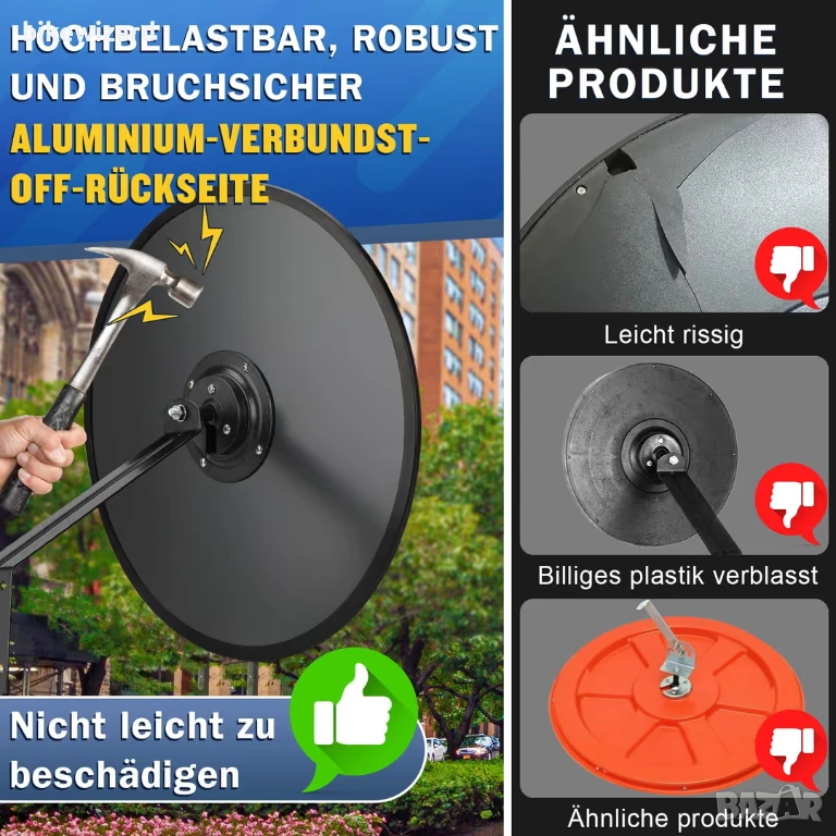 Регулируемо акрилно огледало за трафик с изпъкнало огледало с широк ъгъл 180° – 45 см НОВО → Обява 54152633
