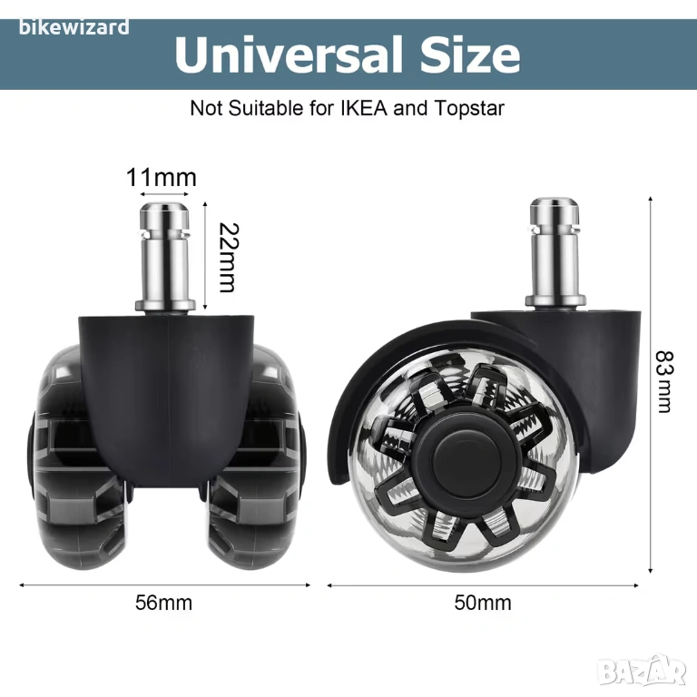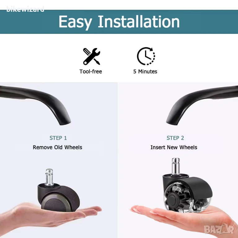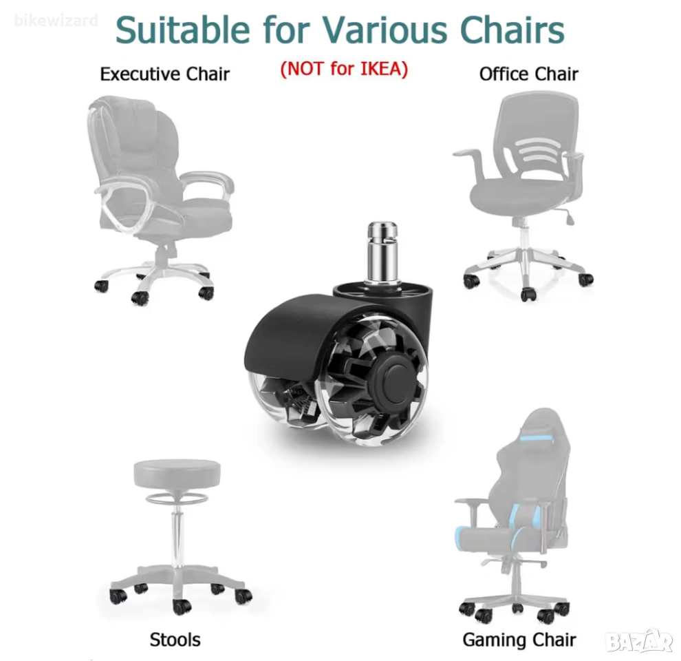 Комплект от 5 резервни колелца за офис столове за твърди подове НОВИ → Обява 54152772
