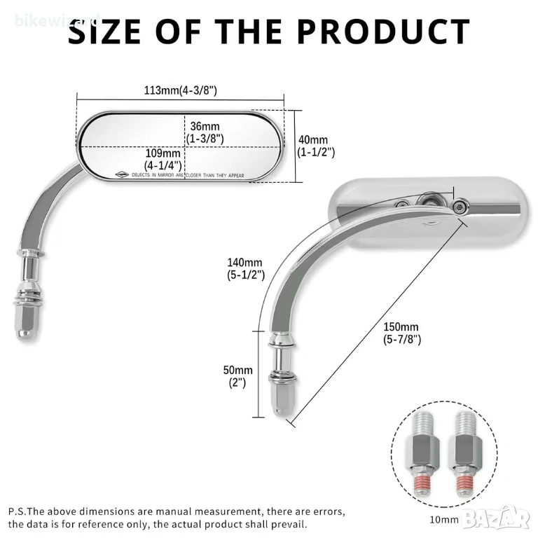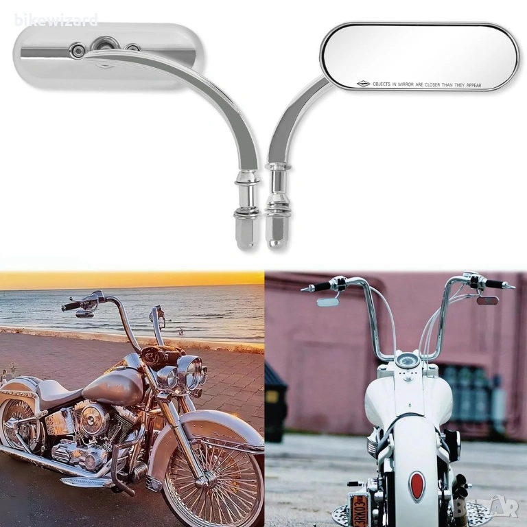 Овални огледала за мотоциклет, хромирани, с резба M8/M10, универсални, за задно виждане - чифт НОВИ → Обява 54152788