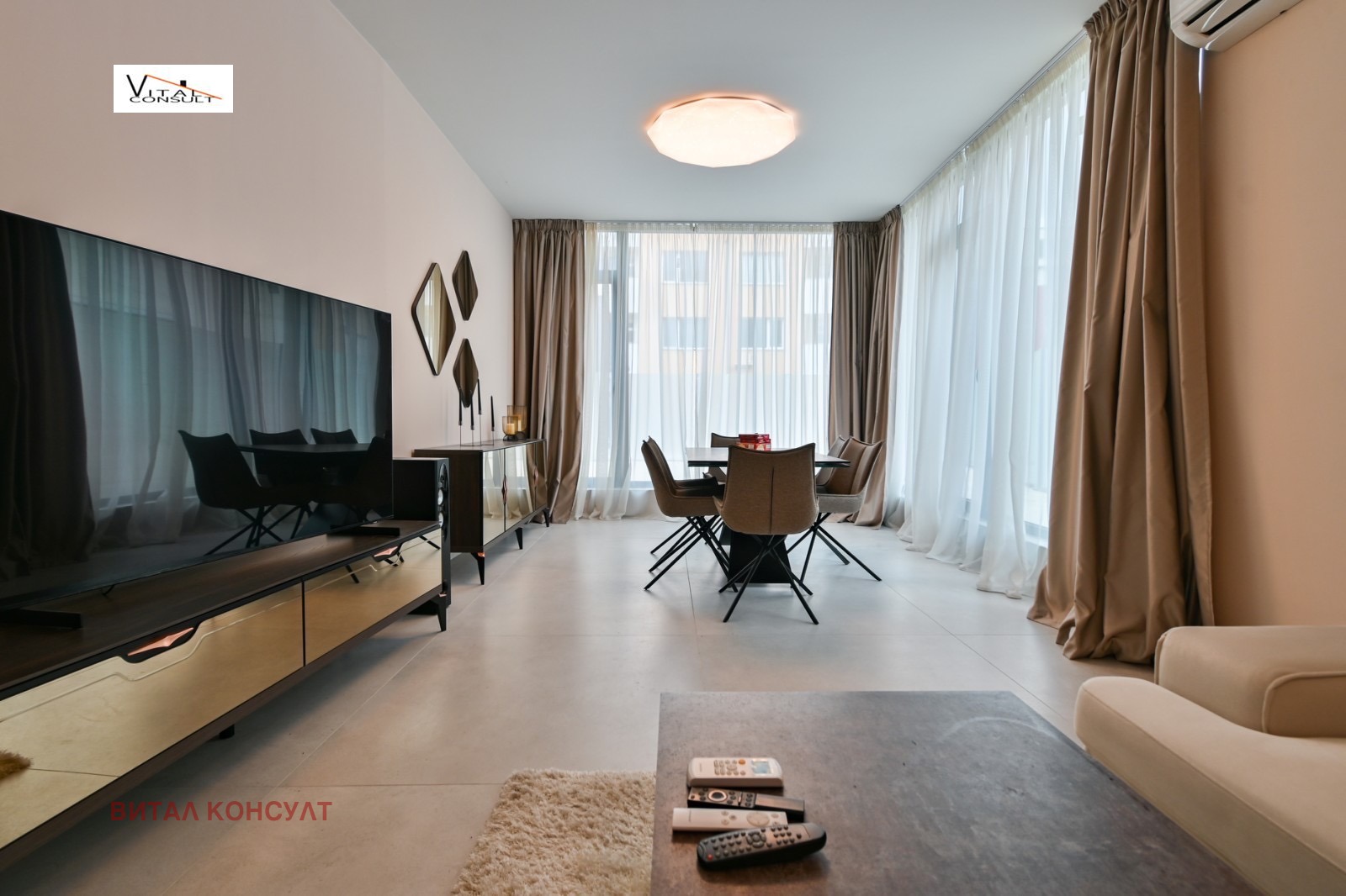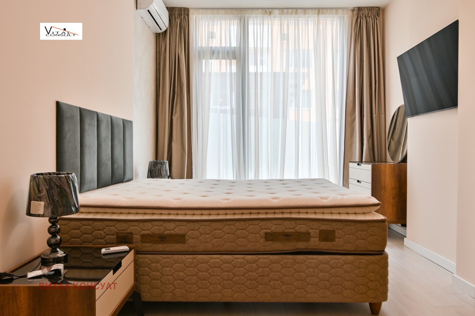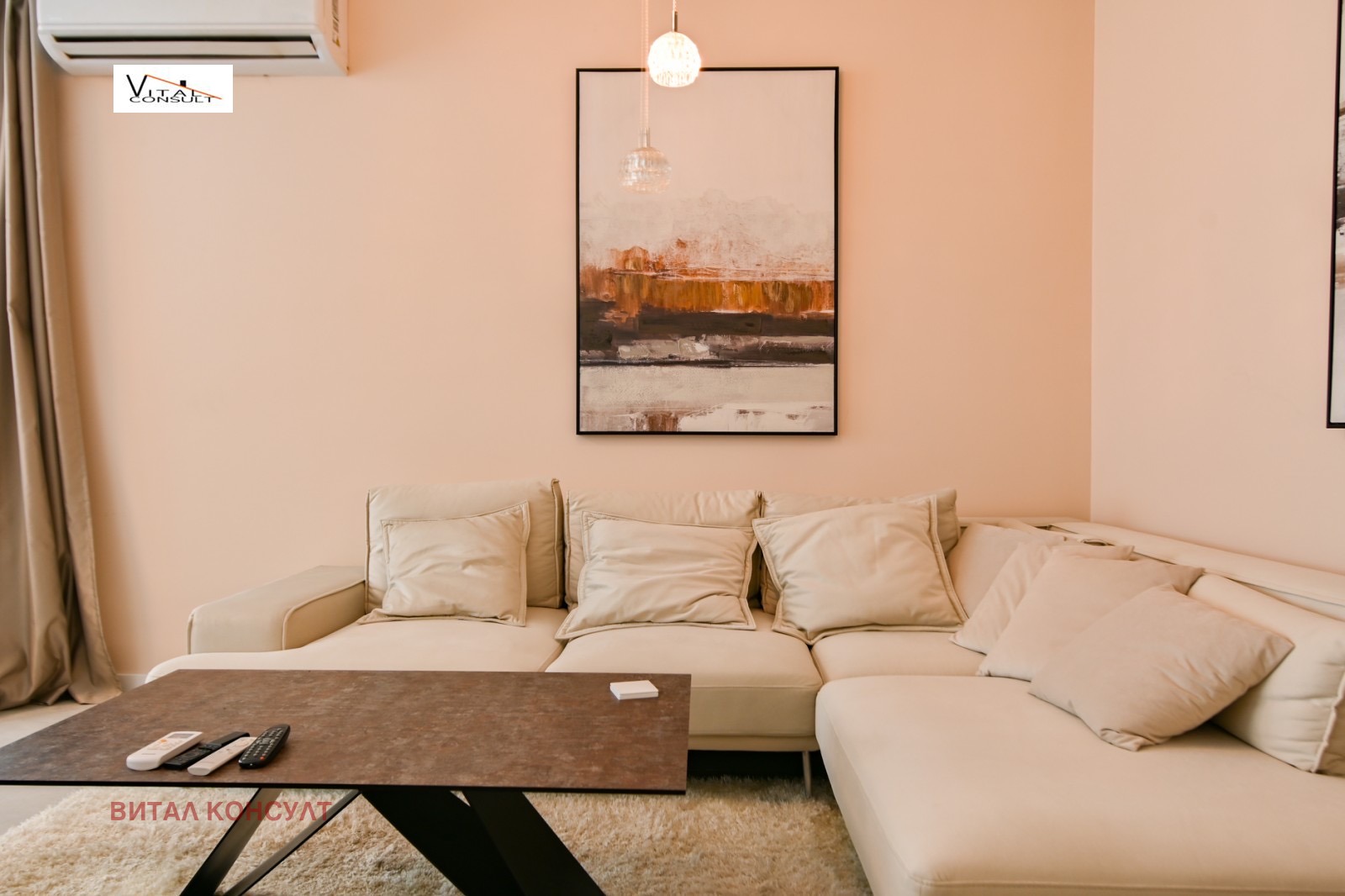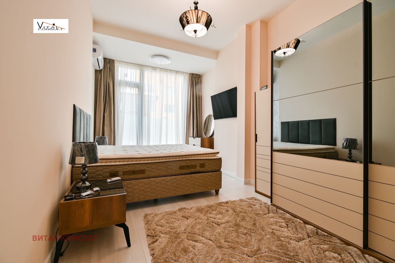 РЕАЛНА ОФЕРТА Свободен от 10 Май; Луксозно изпълнено и обзаведено жилище в малка нова сграда с прилежащ самостоятелен тераса /двор/ към жилището; Кухненски бокс с оборудвана вградена кухня, просторна дневна част с трапезария с излаз към панорамна източна тераса, спалня комплект втора стая със спалня комплект, баня с тоалетна, мокро помещение с пералня и сушилня; подземно паркомясто в цената; Просторно и светло жилище, разположено в престижната тиха част на района в непосредствена близост до основните артерии на града;