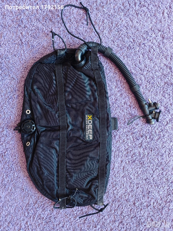 Водолазно сайдмаунта крило Xdeep Stealth 2.0 Side Mount System Full set. На около 120 дайва в Червено море, където солта си е дала някакво отражение на цвета. Функционално е 10 от 10 (с крило, компютър и регулатори - компромиси никакви и никога не се правят). Джобовете за тежести са в комплекта, макар аз лично да предпочитам закрепяне с бънджита, заради плаваемостта и гъвкавостта.
