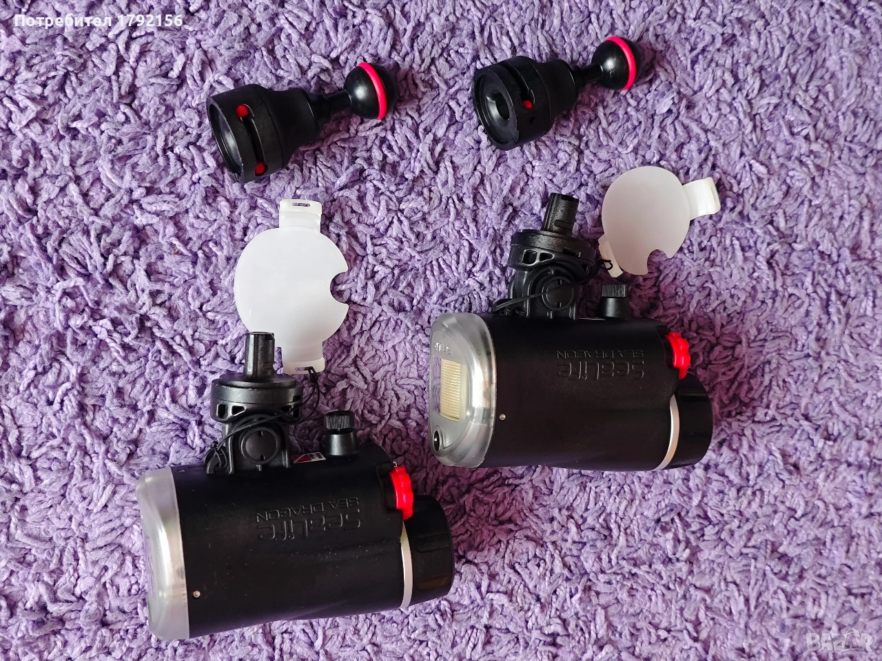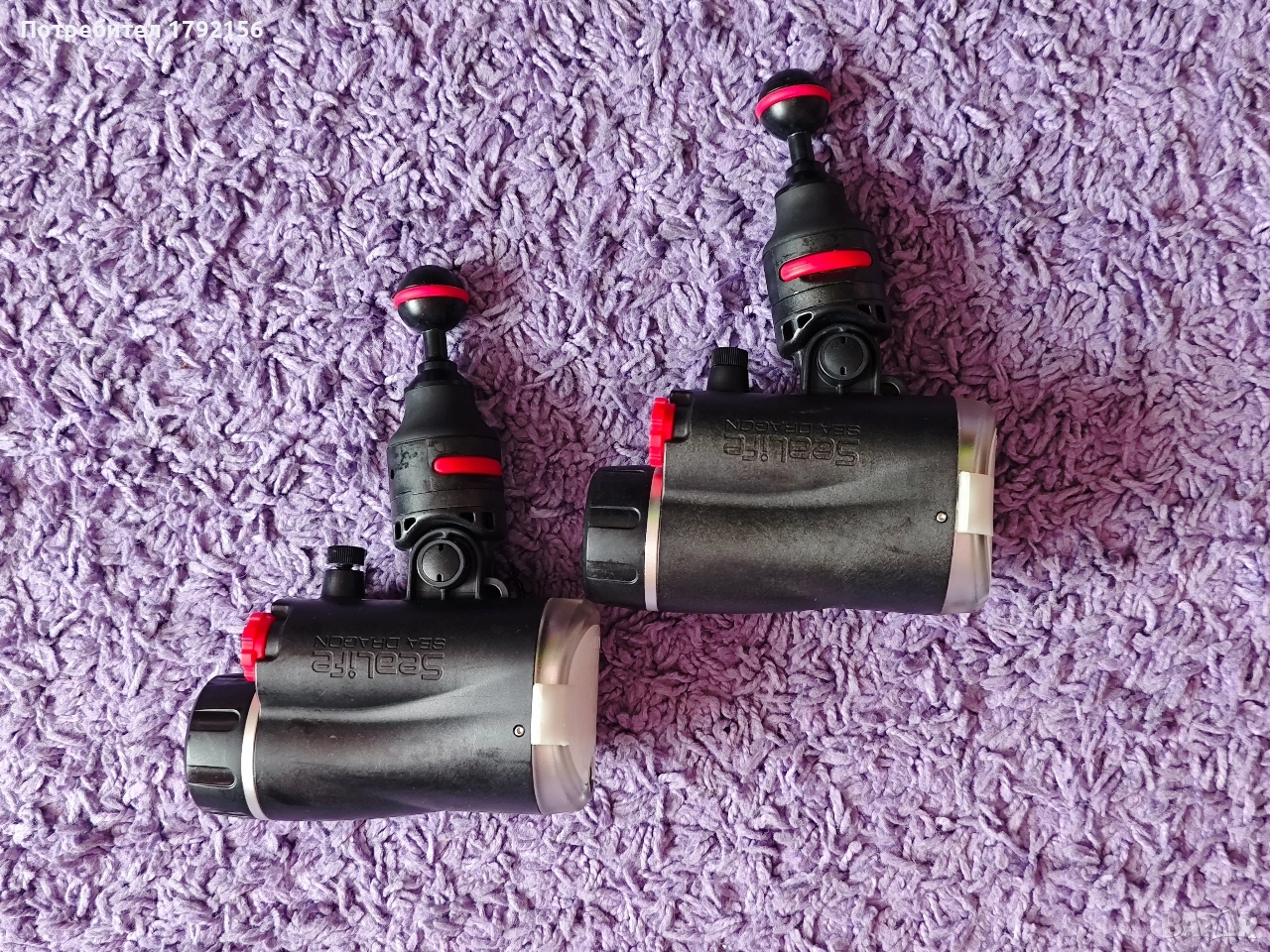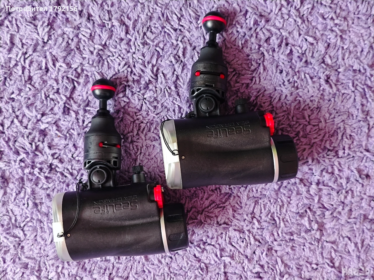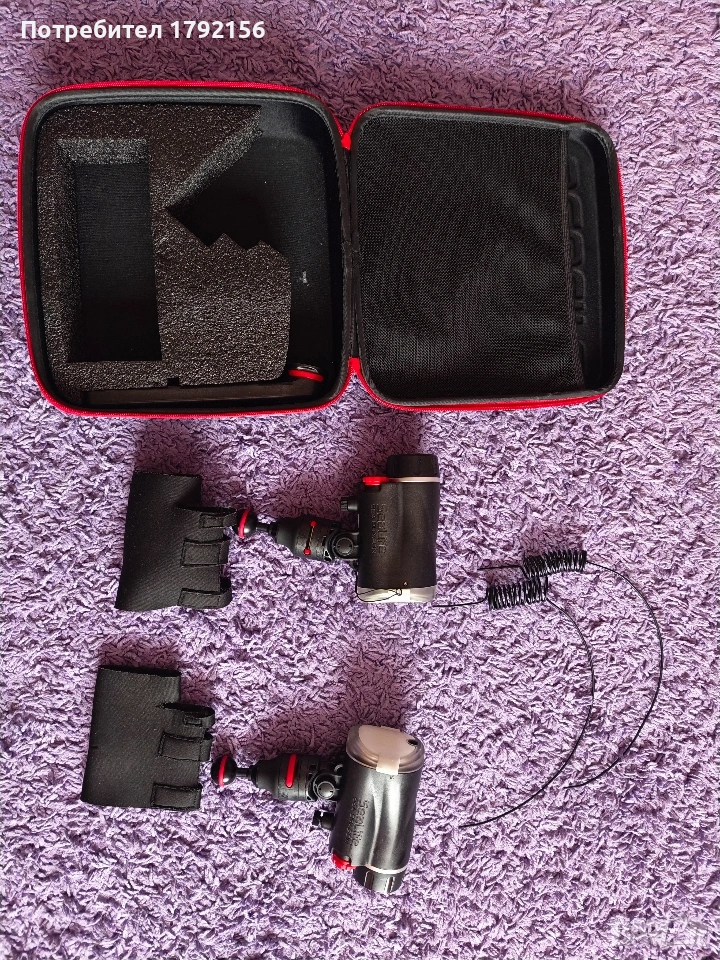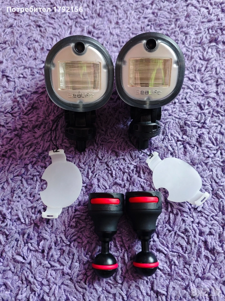 Светкавици за подводна фотография Sealife. Верни бойни другари, с които дойде време да се разделим. Никога не са удряни (идват с неопренови калъфчета, с които винаги ги ползвам) или давени. Идват с 2 бр. адаптери за ball arm, база на Sealife, дифузери и оптични кабели. Работят с по 4 АА батерии - ако някой купувач ми стане много симпатичен, ще го оборудвам и с два комплекта презарежданеми баъерии. Добавям и оригинален калъф на Sealifeс твърди стени. Скачаш във водата и действаш. Прилагам снимки, правени с тях.