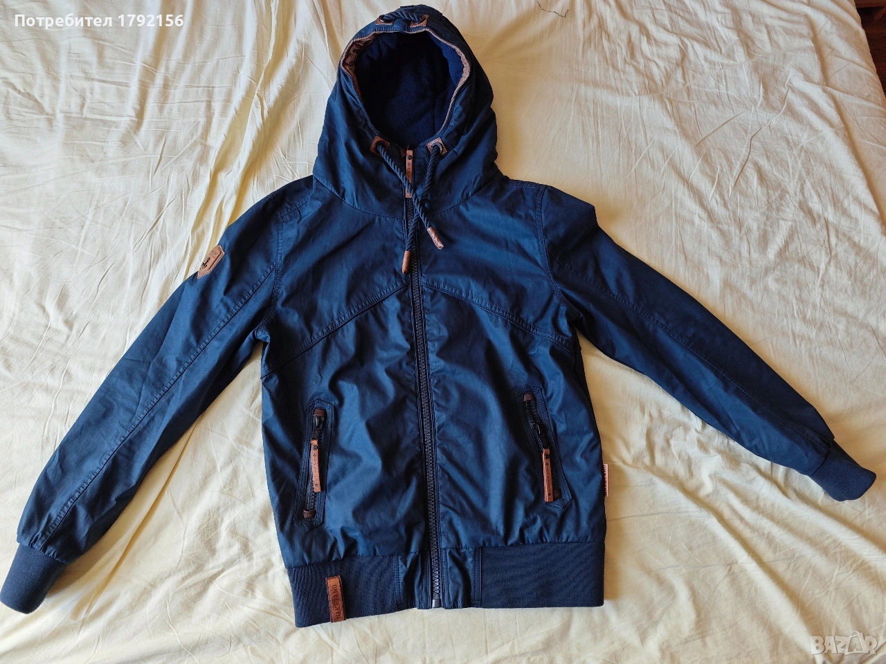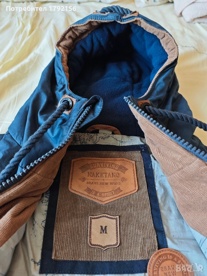 Супер готино яке на Naketano, но трупнах килца и станах за следващия размер. Изключително запазено - няма протрито избеляло или нещо друго. Висока яка и ватирана качулка - може да се носи и до късна есен, и през много ранна пролет. Пази и от студ, и от вятър. Продуктите на тази марка нямат нужда от реклама, затова ще си спестя суперлативите.