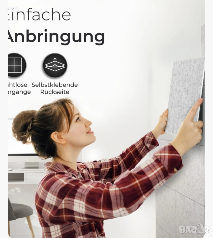 Комплектът Aeco Sound® с 9 самозалепващи акустични панела, изработени от рециклиран филц, значително намалява реверберацията и фоновия шум – за подобрена разбираемост на речта и приятна атмосфера в помещението. Благодарение на самозалепващата се основа, филцовата структура с дебелина 1,5 см може бързо да се постави и отстрани без да оставя следи – идеална за гъвкаво приложение върху врати, тавани и стени.
