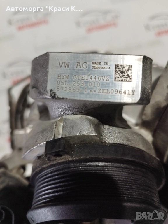 05L253010 Garrett gte1446vz турбо компресор турбина за Фолксваген кади Volkswagen caddy 2023г 2.0tdi 102k Код на двигател DTRB в автоморга KRASI CAR, преди с. Кичево гр. Варна. ВСИЧКИ ЦЕНИ СА С ВКЛЮЧЕНО ДДС. ВСИЧКИ ЧАСТИ СА С 14 ДНИ ПРАВО НА ВРЪЩАНЕ. Изпращане на части чрез наложен платеж с куриер за цялата страна, получаване на следващият ден. Доставката е за сметка на КУПУВАЧА. Издаване на удостоверение за бракуване пред КАТ. РАБОТНО ВРЕМЕ ОТ ПОНЕДЕЛНИК ДО ПЕТЪК от 9.00 ч. до 18.00 ч., СЪБОТА ОТ 9.00 ч. ДО 14.00 ч., ПОЧИВЕН ДЕН НЕДЕЛЯ.За контакти: 0877757681