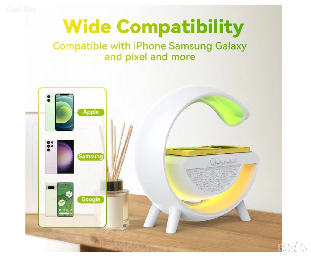 Тонколона с LED светлинки и станция за безжично зареждане / Лампа-зарядно с LED светлини и тонколона → Обява 54153434