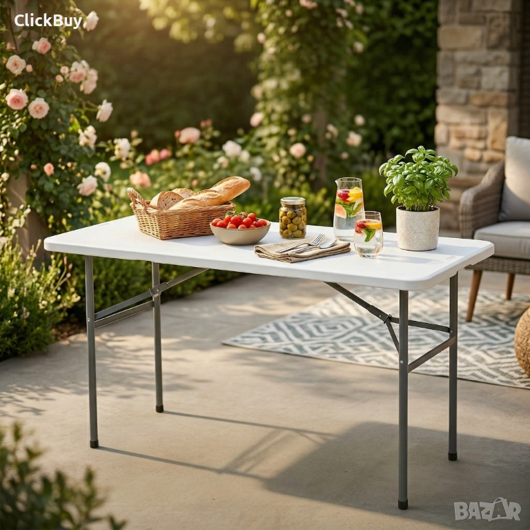 Сгъваема правоъгълна градинска маса, бяла - 181.5 × 74 × 74 см → Обява 54153507