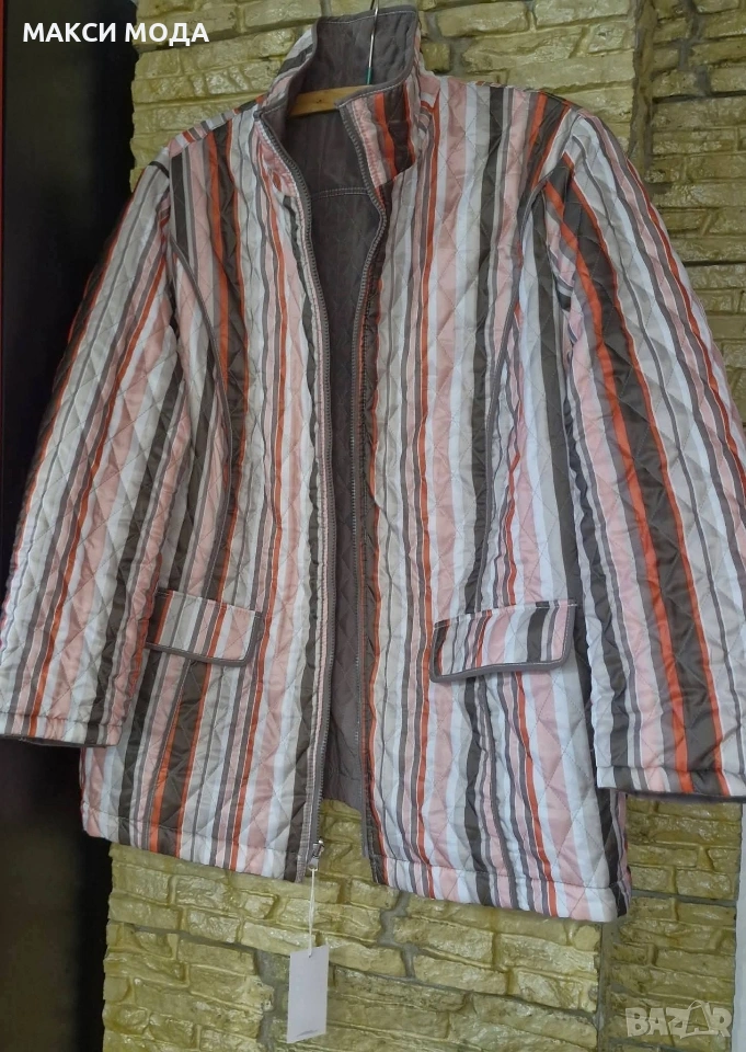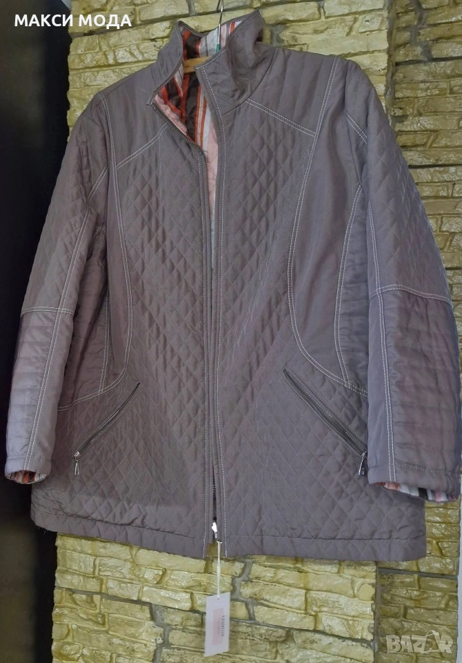 Ново, ДВУЛИЦЕВО, преходно яке Основен цвят кафяв Олекотено, капитонирано Размер по етикет D50 UK 24 Закопчаване с цип Гръдна 140 см Ханш 142 см Обиколка бицепс 46 см Дължина 77 см 17€