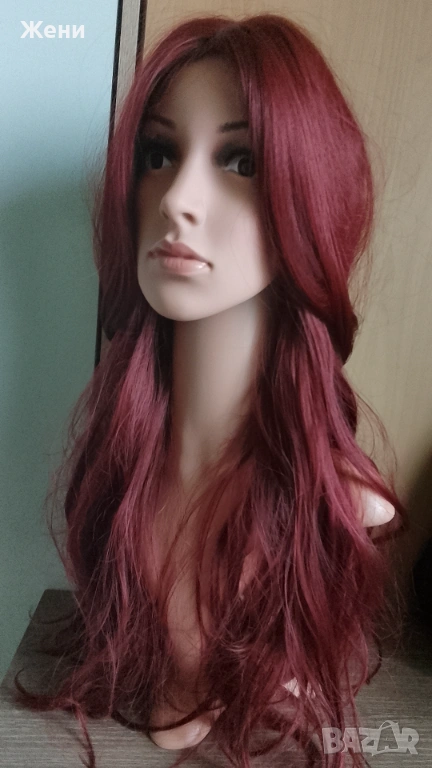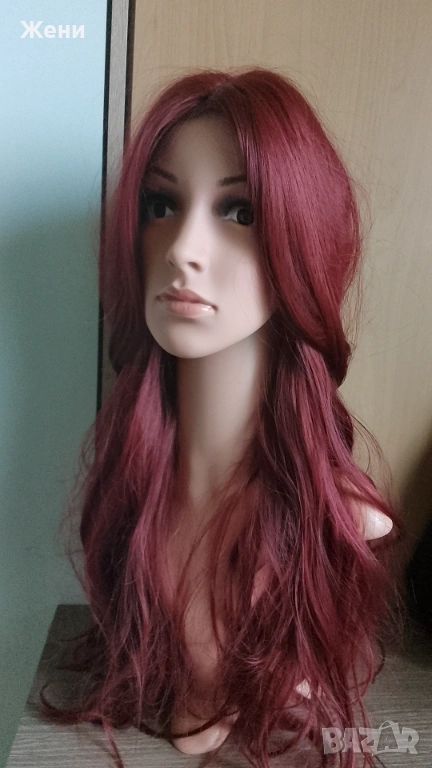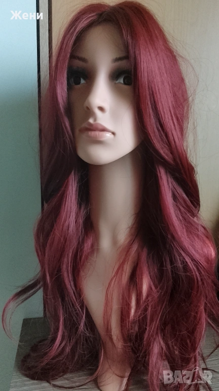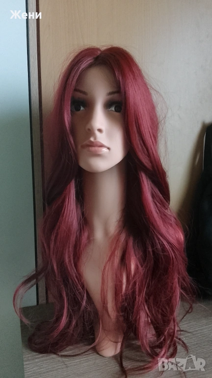 Дълга лейс фронт перука наситено бордо → Обява 54153902