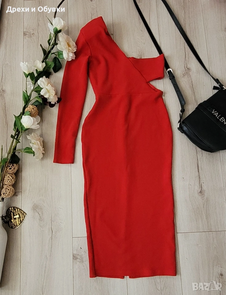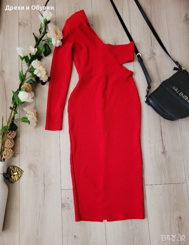 Елегантна червена рокля по тялото MISS GUED– перфектният избор за впечатляваща визия ❤️. Моделът е с един ръкав, което придава модерен и изискан акцент, подчертаващ женствеността и стила. Роклята следва извивките на тялото, оформя красива силуетна линия и създава елегантно излъчване. Подходяща за официални събития, вечерни излизания или специални поводи. Материята е приятна и комфортна за носене, като същевременно стои стилно и изчистено. Състояние: отлично като нова! Размер S Дълга 102см, гръдната варира заради силно еластичната материя ( 75-86см). Цена 20€