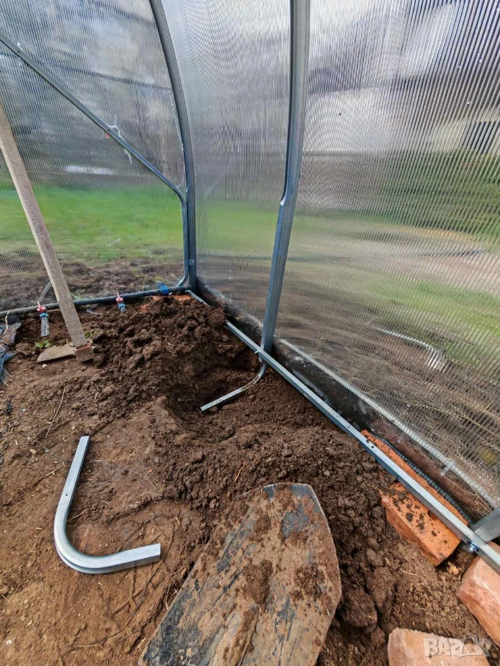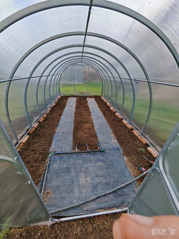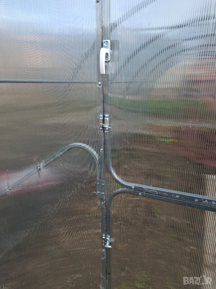 Профил 40x20 мм – здрава конструкция Без заварки – огънати на машина Запазено цинково покритие за по-дълъг живот Предварително разпробити отвори Лесен монтаж – без рязане и пробиване Сглобяване за няколко часа Всеки болт влиза точно на мястото си Изпращаме видео и снимкови инструкции Подходящо за всеки – без опит ЦЕНИ (СТАНДАРТЕН ВАРИАНТ) 3x4 – 535 € 3x6 – 675 € 3x8 – 785 € 3x10 – 895 € УСИЛЕН ВАРИАНТ (през 67 см) 3x4 – 620 € 3x6 – 775 € 3x8 – 915 € 3x10 – 1024 € КАКВО ВКЛЮЧВА ЦЕНАТА В цената е включено всичко необходимо: Конструкция (арки и профили) Поликарбонат 4 мм с UV защита Всички крепежни елементи Анкери за закрепване в земята или върху фундамент Транспорт Получавате пълен комплект – готов за монтаж Единственото, което не влиза в цената, е разсадът домати :) ВРАТИ И ОПЦИИ