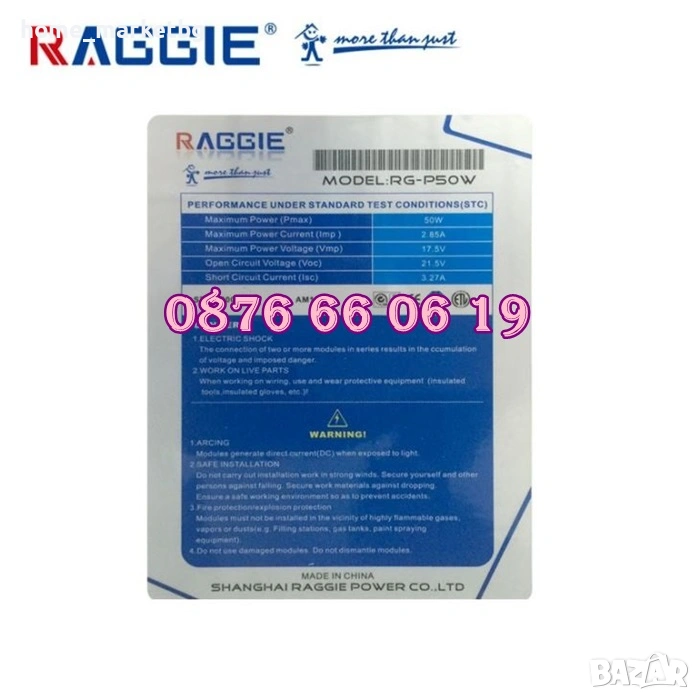 Предлагаме соларни фотоволтаични панели марка Raggie с мощности от 10W до 380W