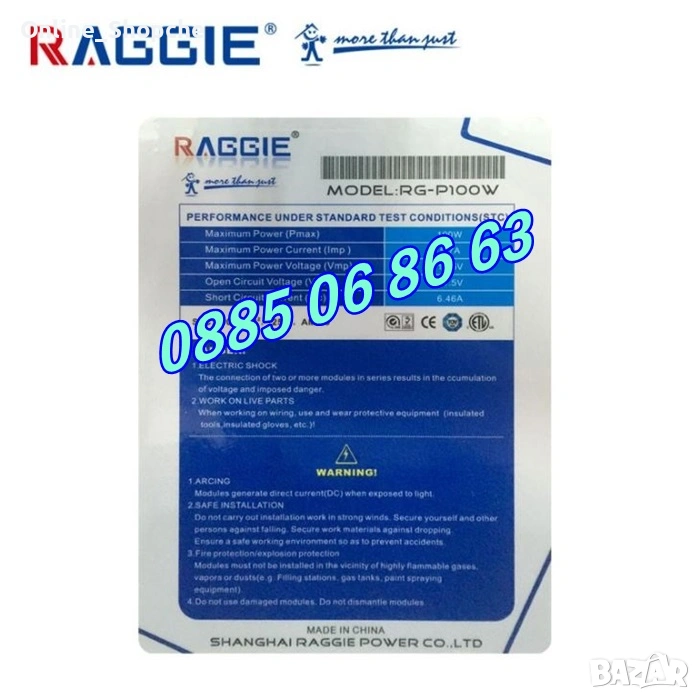 Предлагаме соларни фотоволтаични панели марка Raggie с мощности от 10W до 380W