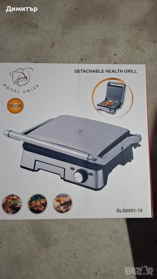 Здравейте! За по-голямо разнообразие от артикули ви каним да разгледате и другите ни обяви в профила ни. Състояние ново със фабрична опаковка. Уреда се предлага с 1 година гаранция. Royal Swiss SLG6001-18 - Панини грил - контактен грил - 1800W- вкл. тава за отцеждане - хладен на допир - подвижни грил плочи. Панини грилът Royal Swiss SLG6001-18 е универсален контактен грил, идеален за приготвяне на различни ястия, като панини, препечени сандвичи, месо, зеленчуци и други. С мощна мощност от 1800 вата, този уред предлага бързо и равномерно разпределение на топлината за оптимални резултати при печене на скара. Ето основните спецификации и характеристики: Характеристики на панини грила Royal Swiss SLG6001-18: . Мощност: Мощност от 1800 вата гарантира, че грилът се загрява бързо и храната се сготвя ефективно и равномерно. . Свалящи се плочи за грил: Плочите на грила са подвижни, което улеснява почистването на уреда. Те са покрити с незалепващ слой, което означава, че можете да печете на скара без да добавяте олио или мазнина и храната няма да залепне. Готино докосване : Устройството има корпус и дръжки, устойчиви на допир , така че можете да работите с него безопасно, без риск от изгаряния. Вградена тава за отцеждане : Скарата има тава за отцеждане , която събира излишните мазнини и сокове, което улеснява почистването и осигурява по-здравословно готвене. Тавичката за капки е лесна за сваляне и почистване. Регулируема горна плоча : Горната плоча за грил е регулируема и се адаптира към дебелината на храната, което я прави идеална за печене на дебели филийки хляб, месо или други по-дебели храни. Скарата може да се отваря и плоско , което позволява да се използва като двойна скара. Контрол на температурата : Скарата има регулируем термостат, който ви позволява да регулирате температурата в зависимост от това какво приготвяте. Това гарантира, че можете да приготвяте различни ястия с прецизност, от панини до пържоли и зеленчуци на скара. Индикаторни светлини : Оборудван с индикаторни светлини, които показват кога грилът е достигнал правилната температура и е готов за употреба. Компактен и преносим : Дизайнът е достатъчно компактен, за да се постави лесно на плота, без да заема много място, и може лесно да се съхранява, когато не се използва. Универсална употреба : Идеален за приготвяне на различни ястия, като препечени сандвичи, сандвичи на скара, панини, пържоли, риба, зеленчуци и други. Подходящ за ежедневна употреба, благодарение на лекотата на използване и широката гама от приложения. Поддръжка : Свалящите се плочи за грил могат лесно да се почистват и често са подходящи за съдомиялна машина. Тавичката за отцеждане събира мазнини и сокове, поддържайки уреда чист и изисквайки по-малко поддръжка. Тази скара предлага комбинация от мощност, гъвкавост и удобство, което я прави идеална както за ежедневна употреба, така и за специални поводи. Размери Дължина на кабела 60 см Височина на продукта 14.50 см Дължина на продукта 34 см Ширина на продукта 34 см Регулируем термостат Да Без бисфенол А Да Ширина на повърхността за печене 29 см CE маркировка Видимо Гаранционен срок на производителя 1 година Дължина на повърхността за печене 23 см Незалепващ покривен материал Керамика Сменяеми плочи Да Плаваща горна плоча Да