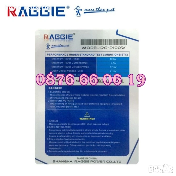 Предлагаме соларни фотоволтаични панели марка Raggie с мощности от 10W до 380W