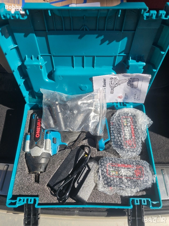 НОВ! ONEVAN акумулаторен безчетков ударен гайковерт 1500Nm + 2 Батерии и зарядно