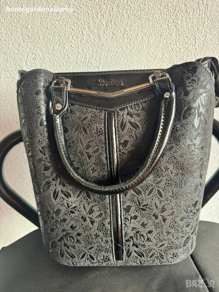 Тази елегантна дамска чанта от марката Berlina е истински акцент в гардероба на всяка жена с усет към стила. Изработена от еко кожа с богат релефен флорален десен — рози и дантелен ефект върху цялата повърхност — тя излъчва изисканост и женственост при всяко излизане.