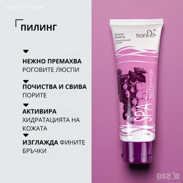 Нежно премахва вроговените люспи, дълбоко почиства и свива порите.