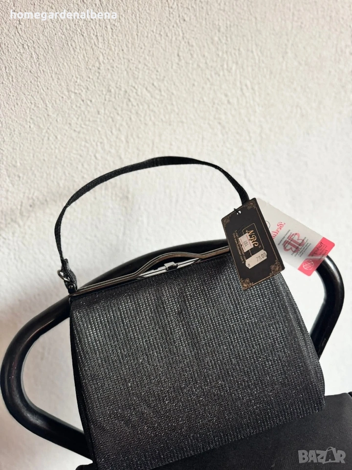 Тази елегантна малка дамска чанта е истинска находка — нова с оригинален етикет и предлагана на изключително изгодна цена. Изработена от черен текстил с деликатен глитер ефект, тя улавя светлината по красив и ненатрапчив начин, придавайки блясък и изтънченост на всяка вечерна визия.