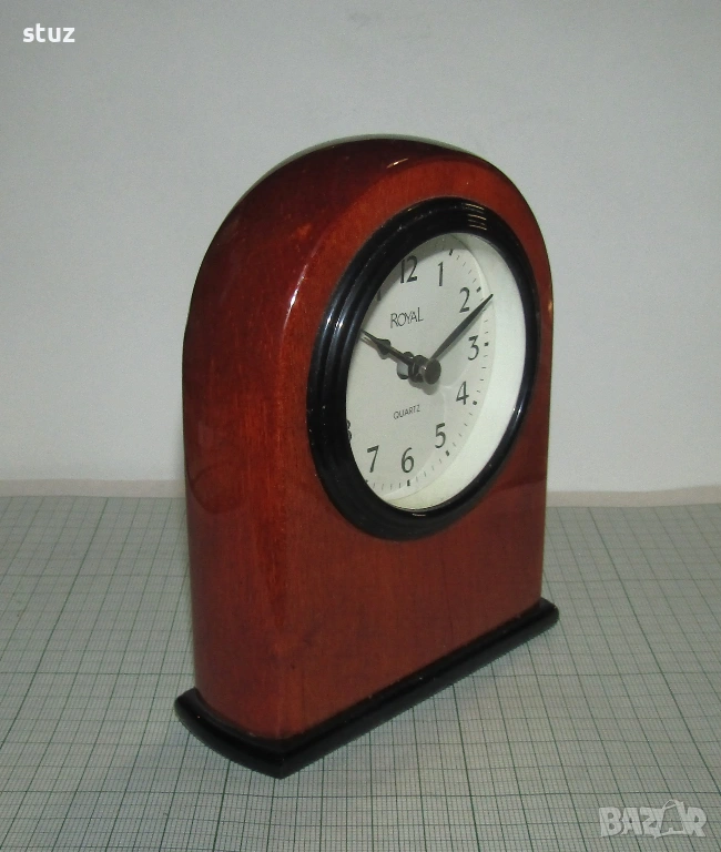 Настолен часовник, масивно дърво, лак, стъкло → Обява 54154302