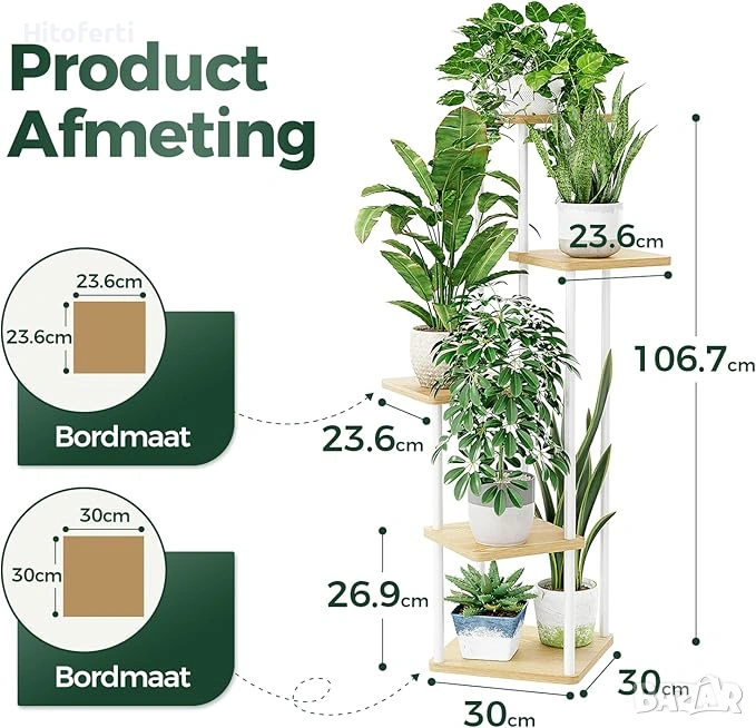Елегантно бяло: Тази стойка за стайни растения се отличава с елегантно бяло покритие, което ще освежи всеки светъл декор. Елегантно допълва цветя и зеленина, озарява пространството ви и добавя свеж, жизнен щрих към дома ви.