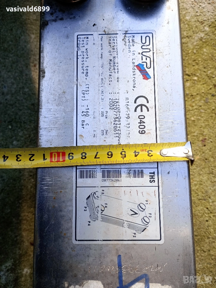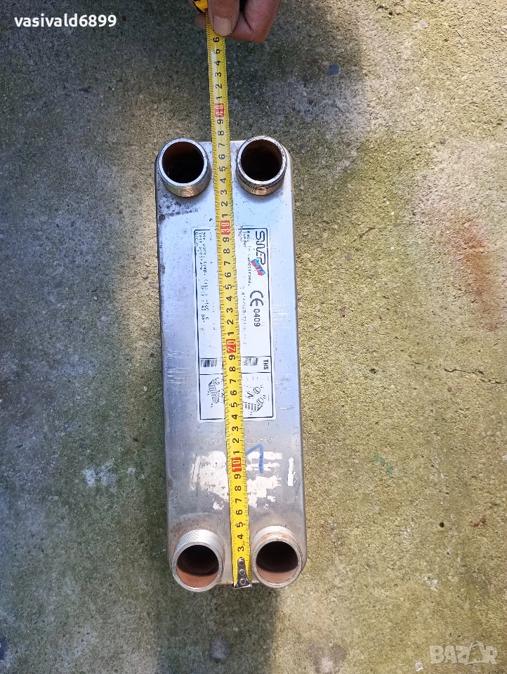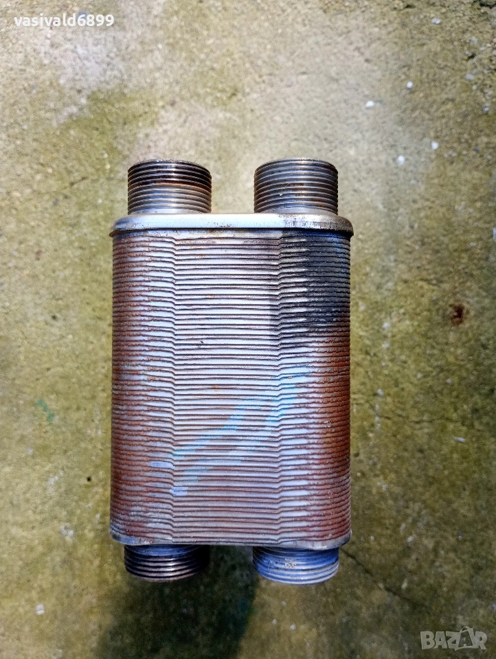 Топлообменник с 6 извода. Параметрите са показани на снимките. Цена: 145 EUR.