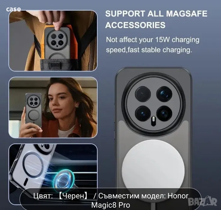 Honor magic 8 pro magsafe кейс ударо-устойчив с матов гръб Налични
