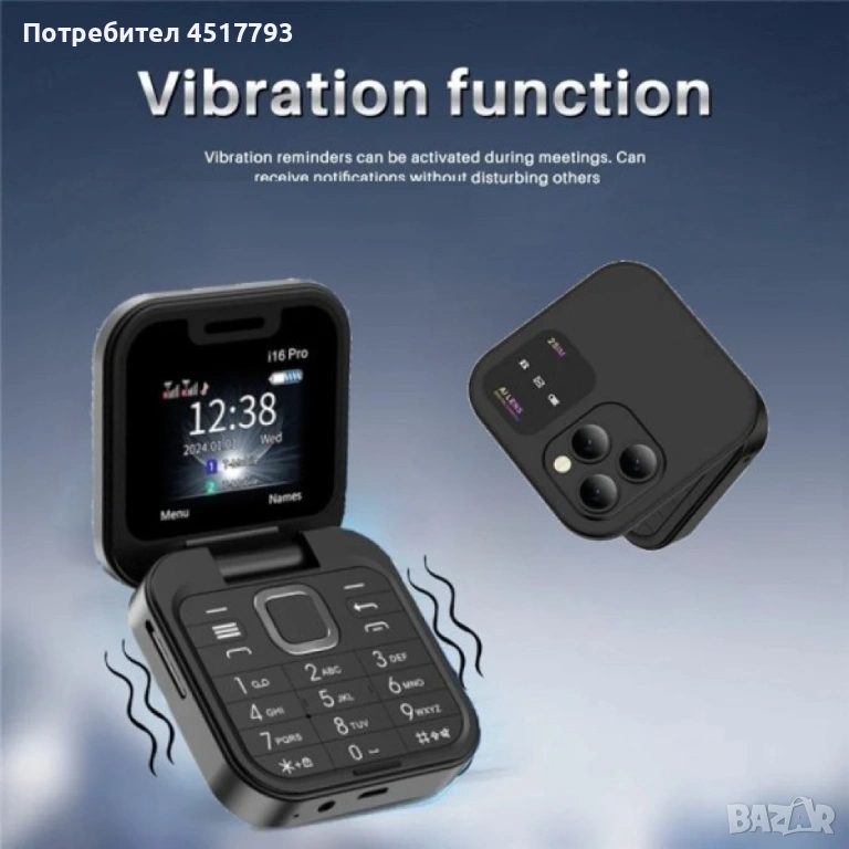Той впечатлява с изключително компактен сгъваем дизайн – стилен като пудриера, изработен в изчистена черна визия. Гладките извивки и компактната форма го правят удобен за захващане и лесен за носене. 1.77-инчовият HD екран е ясен и ярък, а бутоните са големи и разположени с удобен достъп за по-възрастни потребители или такива с ограничена мобилност.